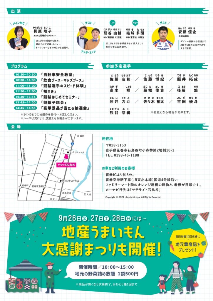 また、今週末10月4日(土)にクラップ石鳥谷で開催されるイベントにも参加予定とのこと。