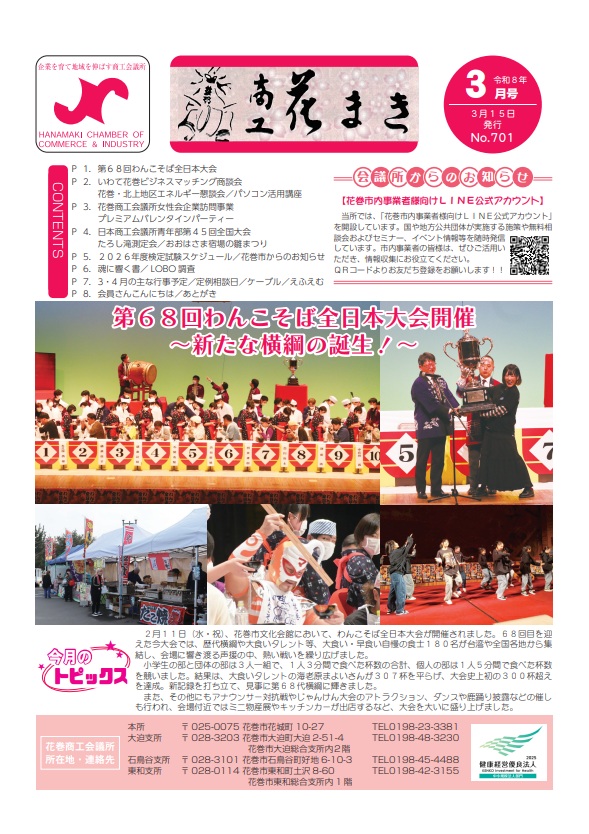 石鳥谷CAT事務局は、花巻商工会議所 石鳥谷支所内にありますので、会議所さんからのお知らせも厳選してお届けいたします。
